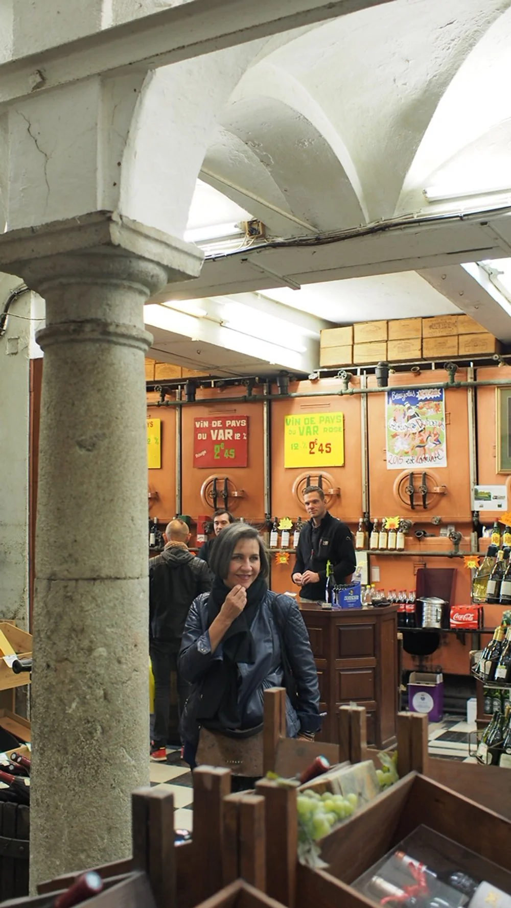 The idea for Carafe Wine came from a number of places and one of those was a trip to France and lunch with friends in Nice. As we roamed around the old town picking up ingredients for our late afternoon lunch, we stopped by an old liquor store with massive vats for regional wines. You can see them in the background of the colour pic.